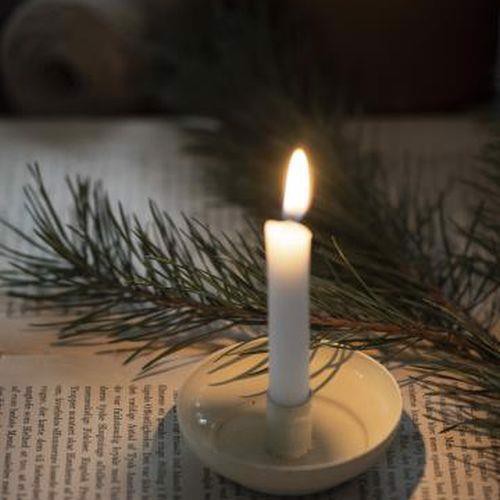 Lille og fin cremefarvet lysestage til kertelys (lange tynde lys)